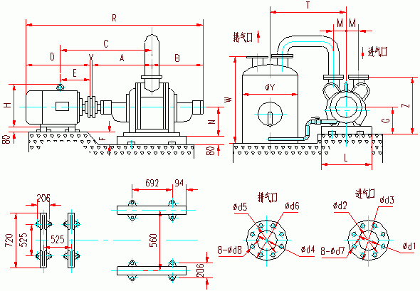| SZ-4真空泵 | 2733 | 950 | 175 | 225 | 290 | 150 | 225 | 260 | 18 | 18 | 70 | 575 | M24×630 |