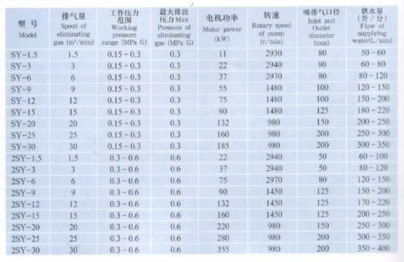 2、可抽吸含大量水蒸氣及含微小顆粒的氣體,當(dāng)更換其它液體做工作液時(shí),還可壓送溶于水或不易與水接觸的氣體